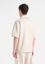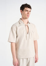 Norbert in Cream Open Collar Textured Drawstring Shirt